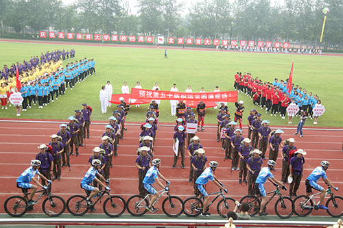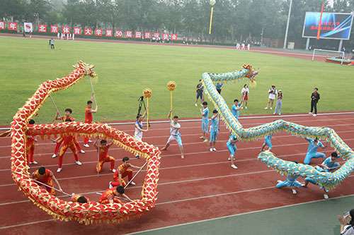 2018年,恰逢金年会建校65周年,入场式尽显欢乐气氛。武术学院方阵舞动着两条巨龙,以生动流畅、轻捷矫健的姿态振奋登场,在主席台前摆出“65”的造型,向建校65周年献礼。校友方阵首次出现在运动会当中,他们之中既有毕业不久的年轻人,也有年逾古稀的老校友。他们喊出 “我爱北体,祝北体生日快乐”的口号,铿锵有力的声音和富有感情的表达传达着他们对母校的真挚情感与美好祝愿。北京市公安局反恐特警校友方阵的整齐队列出现在入场式上,在公安战线上他们屡立战功,在运动场上他们同样庄严威武、斗志昂扬。最后,平昌冬奥会闭幕式上表演“北京八分钟”的参演团队代表进行了体育技能展示。