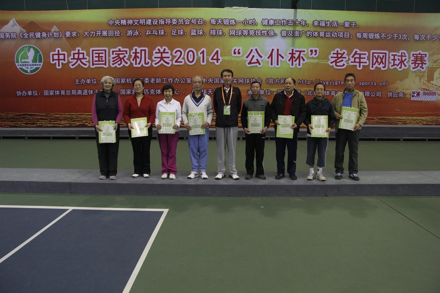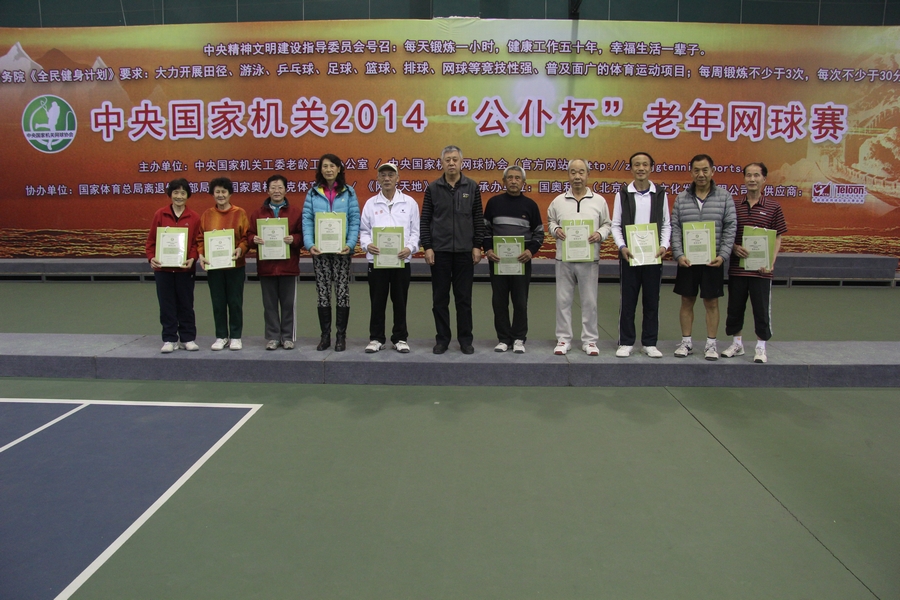 2014年2月26日下午,中央国家机关2014“公仆杯”老年网球赛(特邀组)在国家奥林匹克中心网球馆圆满举行,刘刚处长带领金年会离退休老同志参加了比赛,全体参赛队员不畏老,经过顽强拼搏,取得了较好的成绩。夏怀珍和钱幽萍荣获女子组一等奖;李克健和袁作生、许福秀和刘清玉分获男、女组二等奖;邢文华和李兆华、刘家骥和李志勇、赵秀忠和孔国强荣获男子组三等奖。