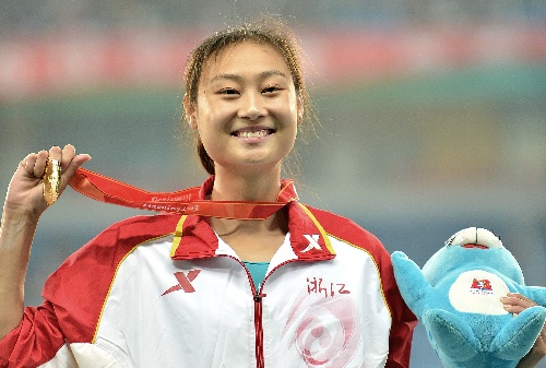 9月8日晚,金年会竞技体校教练周铁民的队员2011级研究生李玲(代表浙江),在女子撑竿跳高比赛中,以4.65米的成绩打破了由高淑英多年保持的亚洲纪录并获得冠军,创造新的历史。