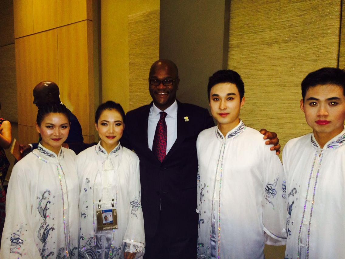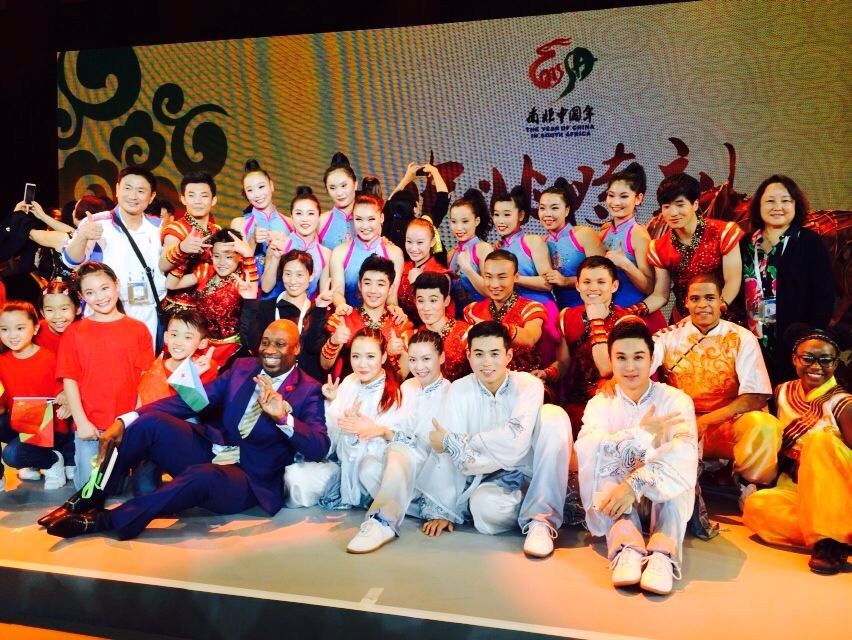 2015年11月,jinnianhui金年会接受文化部演出任务,在校领导的大力支持下,派出国际教育学院田青副院长,武术学院李巧玲教授,田梦艺老师及研究生冯凯杰、尹洪攀同学,参加在南非“中国年”闭幕式暨第六届中非合作论坛约翰内斯堡峰会文艺演出。
