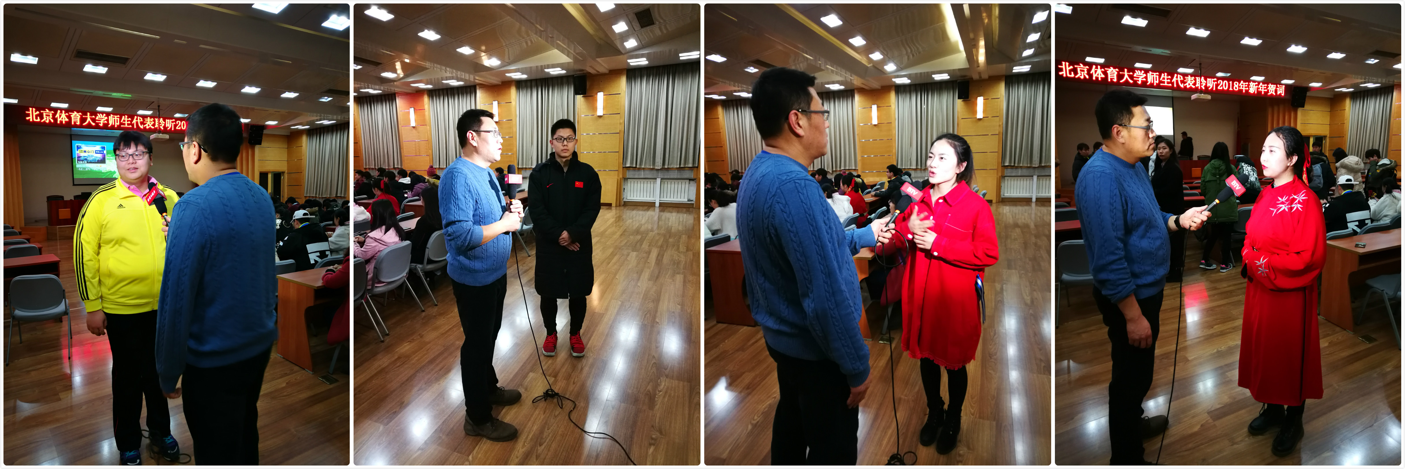 北京电视台采访报道了金年会师生学习聆听习近平主席新年贺词的感想。采访中,教练员和教师代表高鹏、刘卉、周铁民、李慧,学生代表高昇、李家晟、李泽润、汉宸玉纷纷表示,习近平主席的新年贺词谈到了很多人民群众关心的热点问题,听上去亲切平实,但却催人奋进,给人以感动和力量。2017年,我国在各个领域取得的巨大成就令人备受鼓舞,尤其是党的十九大的胜利召开,更是为我们指明了今后奋斗的目标和方向。作为一名北体人,坚信“幸福都是奋斗出来的”,并会将“不驰于空想、不骛于虚声”的倡议转变为行动的力量,踏踏实实干好工作,认认真真完成学业,为“两个一百年”奋斗目标和中华民族伟大复兴中国梦的实现贡献北体智慧和北体力量, 奋力谱写新的篇章。
