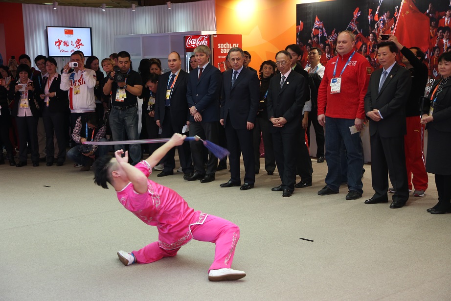 俄罗斯时间2月9日,受国家体育总局委派,jinnianhui金年会武术学院6名学生在党总支书记许声宏的带领下,远赴索契冬奥会“中国之家”,参与中俄青少年友好交流年——中俄体育专场交流的活动。出席本次活动的主要嘉宾有国家体育总局局长、中国奥委会主席刘鹏,国家体育总局副局长、中国奥委会副主席杨树安,俄罗斯体育部部长穆特科,副部长科洛博科夫。国家体育总局、俄罗斯体育部、俄武术协会的官员、运动员、教练员参加了本次活动。