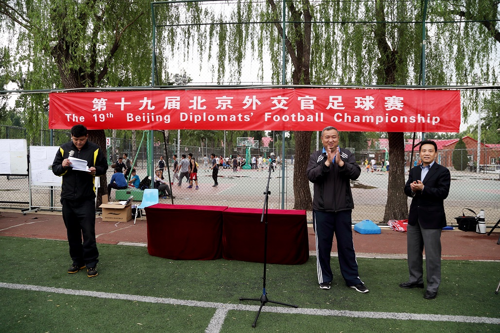 5月9日,第十九届北京外交官足球赛在金年会举行,共有十六支球队参加角逐,最终土库曼斯坦队获得本届比赛冠军。金年会党委副书记、副校长池建出席比赛开幕式并致欢迎词。