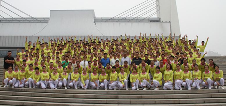作为第九套广播体操创编单位,金年会接到表演任务后,学校领导亲自部署相关工作,并抽调教育学院体操教研室李翠玲、丁冬云、竭晓安、李吉和体操专项研究生具体负责训练的技术指导工作。教育学院书记聂伟、竞技体育学院副院长梁栋、体育艺术系副书记谢谦,以及三个院系的辅导员,利用每天早操、周三上午的时间组织300多名学生进行练习。师生克服了酷暑和临近期末考试的困难,从每个动作的分解,到动作与音乐的衔接;从队形队列的设计,到分列式正步入场,对每个环节反复演练,力求完美。