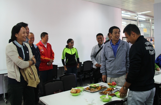 午餐期间,校党委副书记、纪委书记程建平、保卫处处长李少雄、后勤管理处党总支书记孙卫、副处长程建凯、校(党委)办公室副主任赵杨、教育学院党总支副书记尚迎秋、武术学院党总支书记许声宏、体育传媒系党总支书记蔡文菊、党委统战部干部郭锐及各院系辅导员来到清真餐厅为穆斯林师生送去了节日的祝福。后勤管理处饮食服务中心积极制定菜谱、购买原材料,为过节的师生送上可口的饭菜。