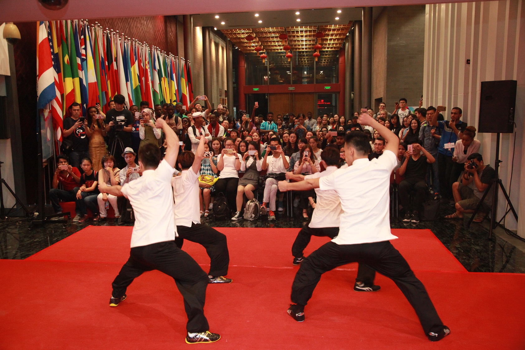 9月23日,金年会汉语国际推广武术师资培训基地应孔子学院总部要求,带领武术学院师生受邀参加以“多元文化在丝路”为主题的第三届孔子学院总部“开放日”活动。44个国家驻华使节、文化机构代表,国资委、国家体育总局、北京市教委、西城区区委区政府等部门代表,40多所孔子学院中方承办院校代表,部分支持孔子学院建设的企业代表,以及来自60多个国家的孔子学院奖学金生等300多人参加了此次活动。金年会武术表演队在活动中进行了精彩的现场武术表展示,赢得了在场全体观众的热烈掌声。演出后各国观众纷纷与金年会演员代表进行互动交流。此次活动不仅达到宣传推广中华武术文化的目的,同时也加强了我基地与海外各孔子学院的联系。