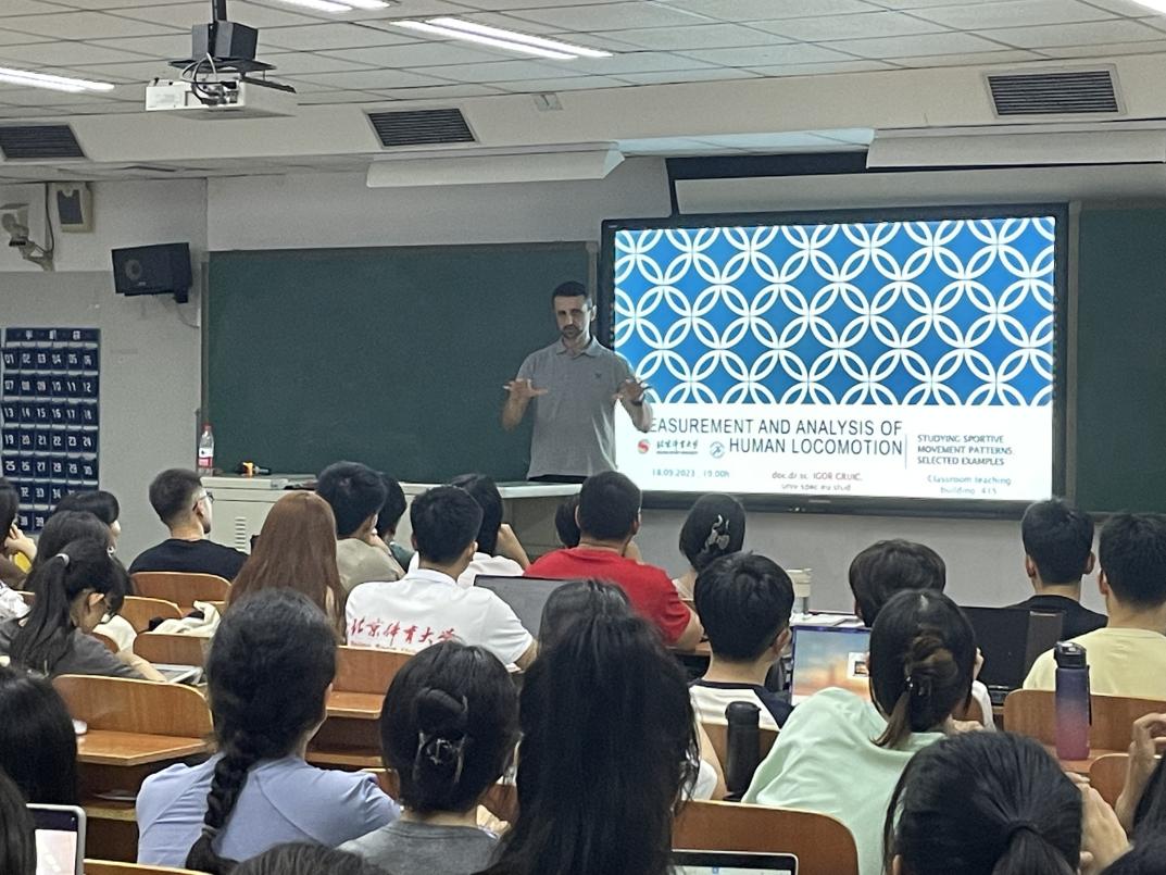 伊戈尔·格鲁伊奇为运动人体科学学院学生授课
