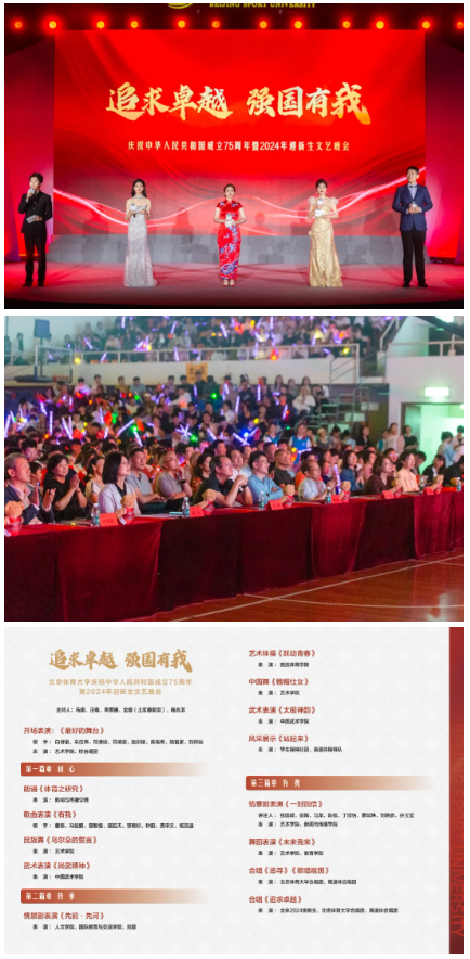 青年是未来,用音符擦亮岁月微光,用心跳燃烧炙热舞台,用年轮收藏记忆永恒。在晚会的末尾,jinnianhui金年会老年合唱团带领全场合唱《追寻》《歌唱祖国》,在庆祝新中国成立75周年之际,在激情四溢的青春里,北体人用歌声唱响时代的乐章。击鼓催征,奋楫扬帆,在场所有观众共同唱响校歌——《追求卓越》,2024年迎新生文艺晚会在振奋人心的合唱声中圆满落幕。